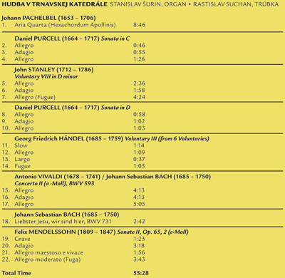 STANISLAV ŠURIN wurde 1971 in Trnava geboren und studierte Orgel am Staatlichen Konservatorium in Bratislava, am Diözesan-konservatorium in Wien, an der Musikhochschule in Bratislava (Prof. Ivan Sokol) und privat bei Prof. Johann Trummer in Graz. Er war Organist am Martinsdom in Bratislava (1991-1995). Als Solist hat er mit der Slowakischen Philharmonie mehrere Kompositionen für Orgel und Orchester interpretiert. Orgelsolokonzerte gab er in mehreren Staaten Europas, Nordamerikas, in Mexiko und Taiwan. Er realisierte mehrere CD-Aufnahmen (Orgelsolo im Grazer Dom und in der Wiener Schubertkirche). Er ist Gründer der Bachgesellschaft in der Slowakei und Gründer des Orgelfestivals in Trnava, Pieštany und Skalica. Er ist Mitglied der Europäischen Konferenz der Kirchenmusikverbände CEDAME. Er war Chefredakteur der Zeitschrift für Kirchenmusik Adoramus Te von 1999-2002. S. Šurin unterrichtet an der Katholischen Universität in Ružomberok. Seit Februar 2006 ist er als offizieller Hauptkirchenmusiker der Erzdiözese Bratislava-Trnava und Organist in der Tyrnauer Kathedrale tätig.