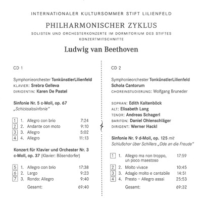 Mitwirkende Prof. Mag. Dr. h.c. Karen De Pastel Prof. Mag. Werner Hackl Tonkünstler Ensemble Wien Schola Cantorum Srebra Gelleva (Klavier( Edith Kaltenböck (Sopran) Elisabeth Lang (Alt) Andreas Schagerl (Tenor) Daniel Ohlenschläger (Bariton)